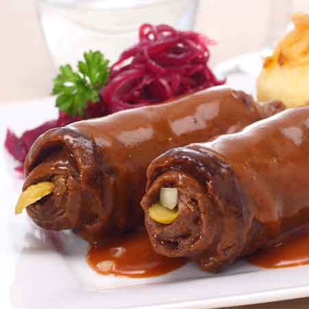 Pour the stock over the beef olives and put into the oven at gas mark 4 for 1 and half hours until tender.