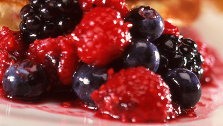 Place the berries in a heavy-based pan with the sugar and orange juice, then stir gently over a moderate heat until the sugar is dissolved.