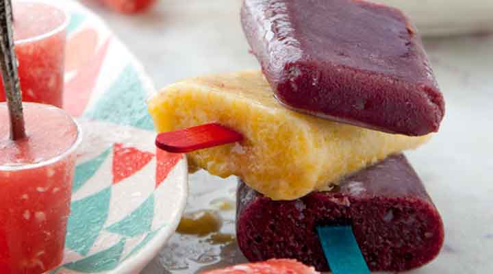 Pour into ice pop moulds and place in the freezer. Insert the ice pop sticks or spoons after 30 minutes, when the