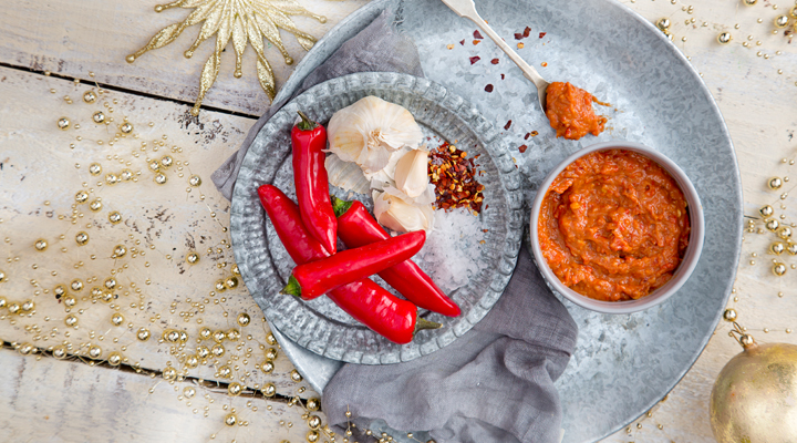 Once the chillies are done, put the, in a food processor with the drained sun-dried tomatoes and the rest of the ingredients and blend until smooth.
