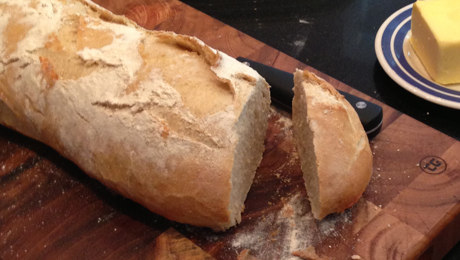 Knock back the bread and roll into a loaf shape (or divide into 12 pieces and roll into round shapes) and place on a well greased/floured baking tray.