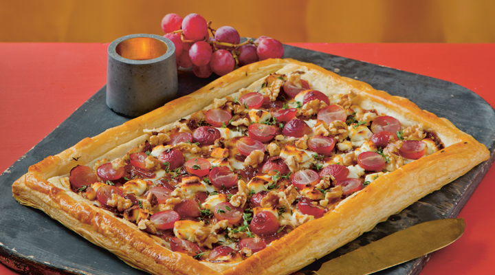 You can swap out the toppings in this open tart for whatever you have in your fridge or cupboard. It’s also a great way to finish up any leftovers from the Christmas cheeseboard