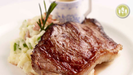 Allow the sauce to simmer for 4-5 minutes. Serve on top of the steaks and bacon champ, with some steamed green vegetables.